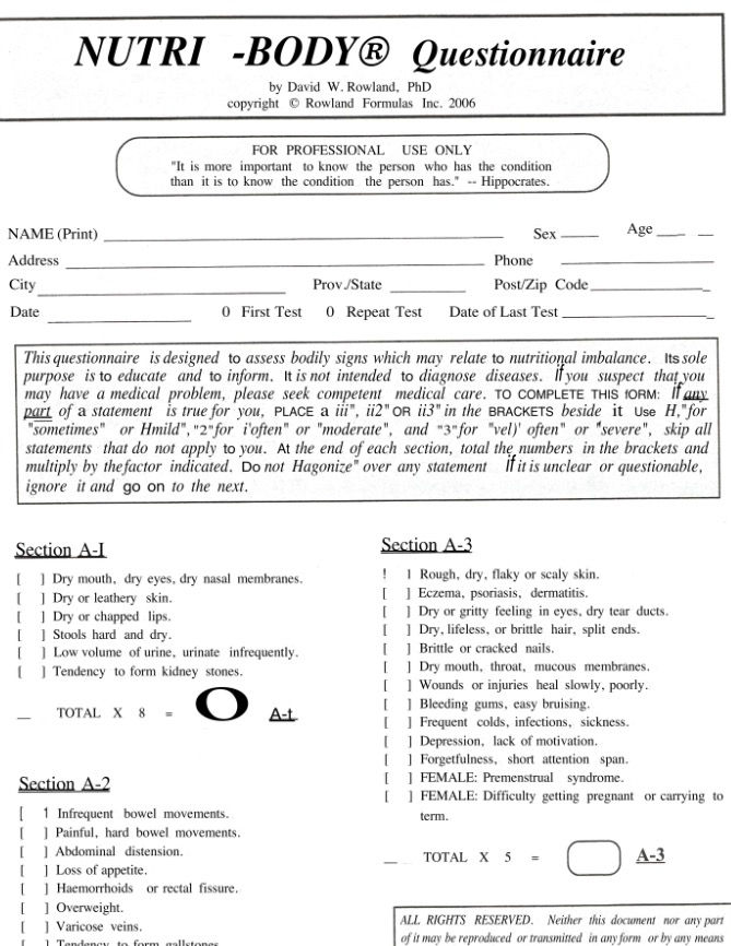 Multiple questions to assess where you are lacking or have excesses.